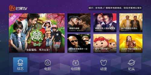 芒果TV專區,是以湖南衛視芒果TV所有視頻內容資源為基礎,并根據江蘇用戶觀看習慣而定制的云媒體點播業務。用戶可通過云媒體電視收看湖南衛視的包含同步熱播電視劇、綜藝、動漫在內的優質節目,實現在家就可以隨時享受家庭影院的精致體驗。目前,芒果TV業務正處于上線初期,已推出綜藝、電視劇、電影、動漫、紀實五大頻道。